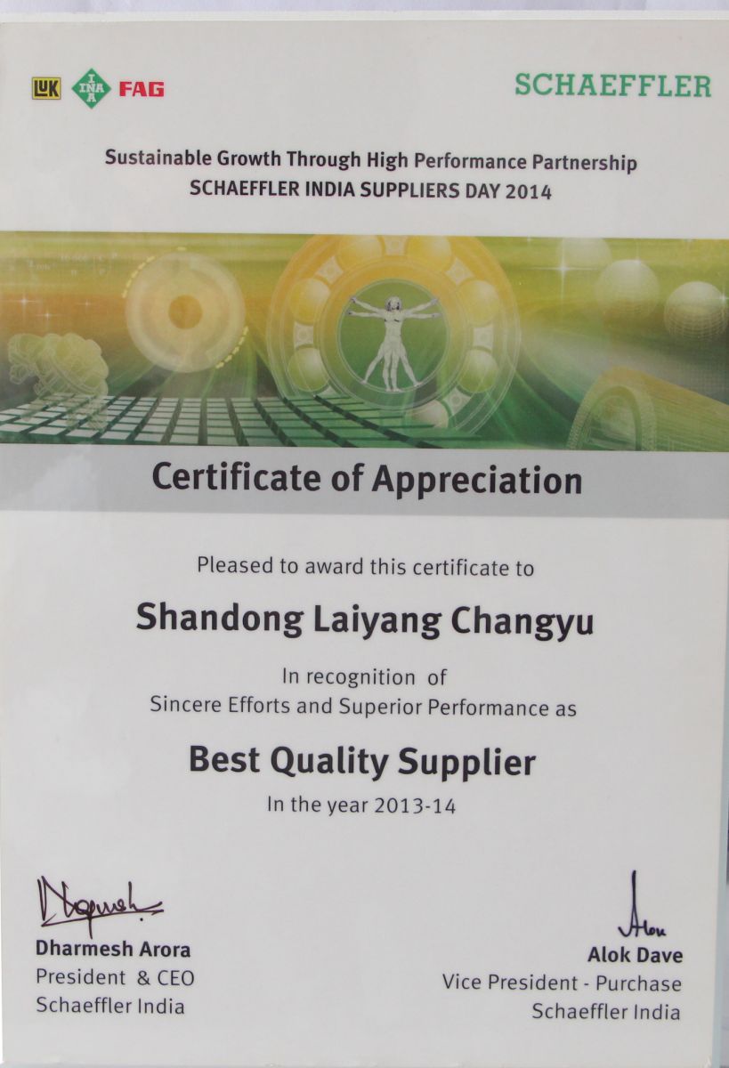 我公司荣获13-14年度舍弗勒“最佳质量”奖